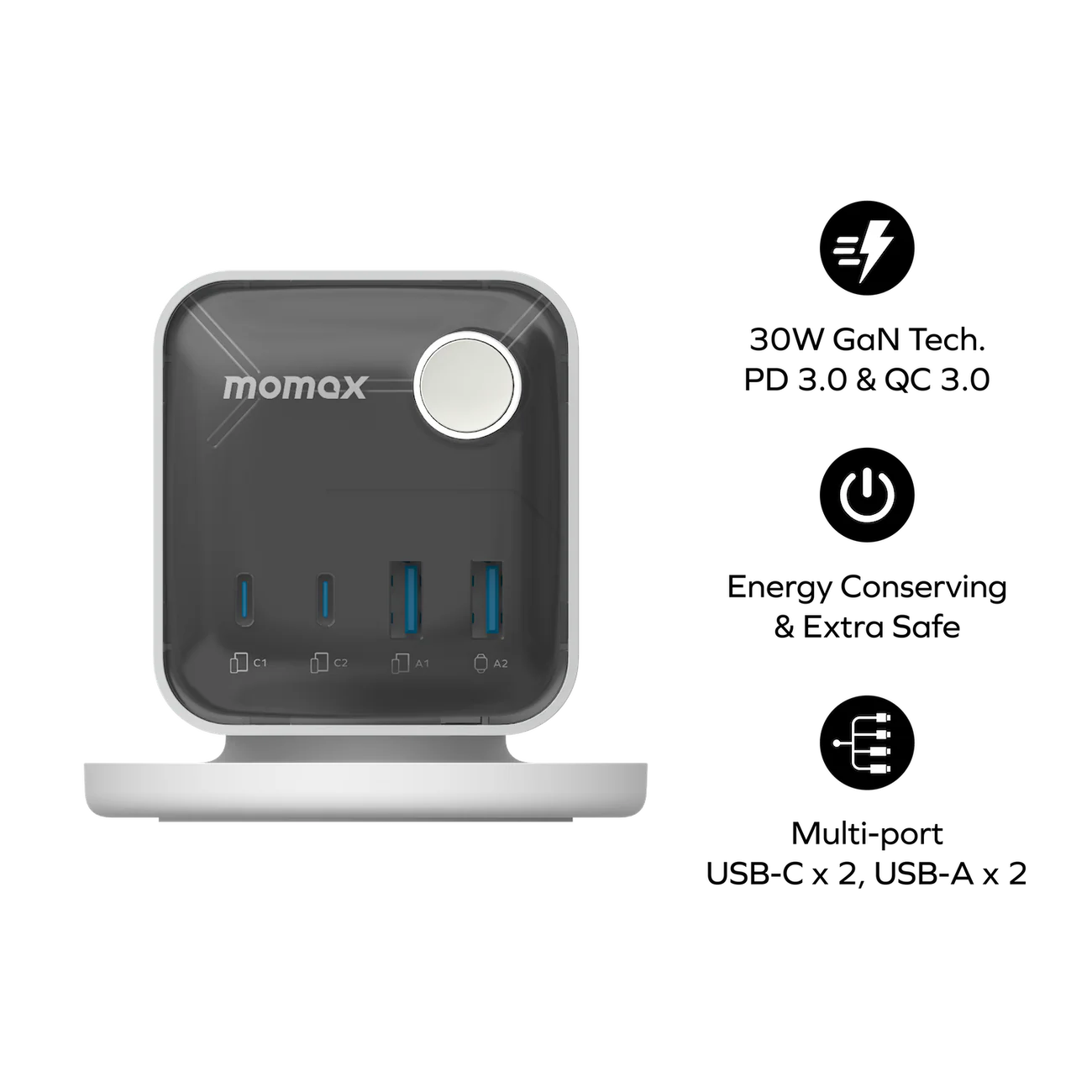 This isn’t just a charger; it’s a lifestyle upgrade. Simplify your workspace while enjoying powerful performance—all wrapped up in an elegant design that fits seamlessly into any workspace. Get your Momax 1-Charge Work Flow Power Cube now and experience seamless and smart charging!