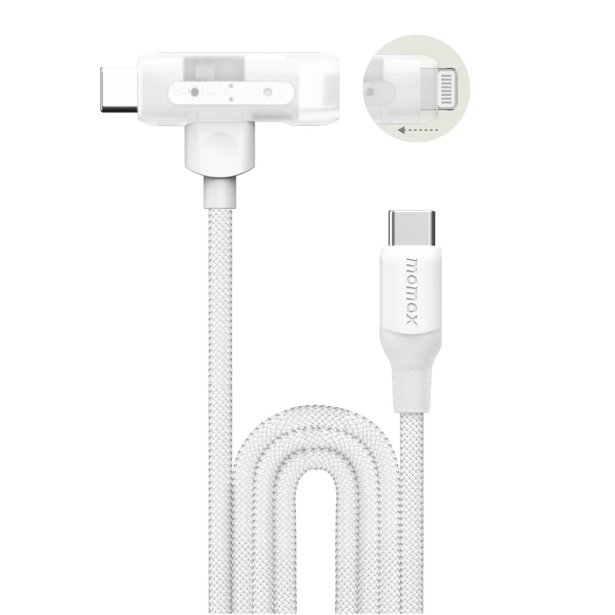 Momax Flagship Flow Series – Support iPhone or iPad fast charging. Slide to switch Lightning to USB-C cable.