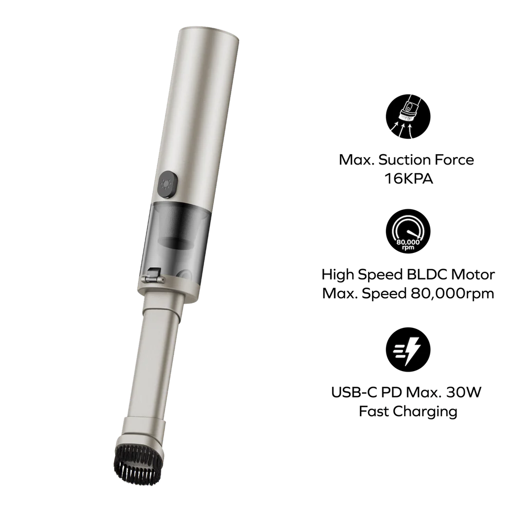 The 1-Move Portable Vacuum packs a serious cleaning punch thanks to its high-speed brushless motor. Spinning at an impressive 80,000 rpm, the motor delivers a maximum suction power of 16KPa. This means the 1-Move Portable Vacuum can really dig in and lift up even the toughest dirt and debris, leaving your floors and surfaces spotless.