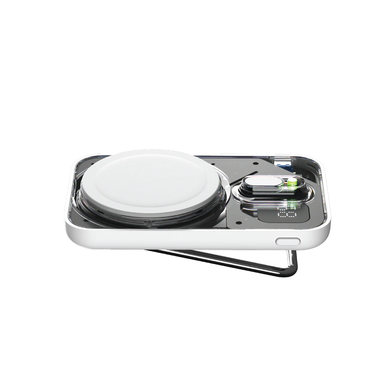 The foldable metal stand makes it easy to prop up your device while it’s charging.