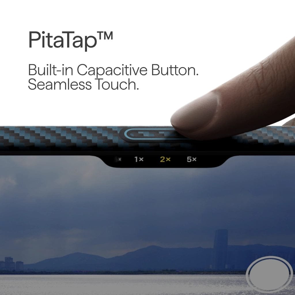 A case under 1 mm thick shields the Camera Control Button with aramid fiber, while a hidden capacitive layer lets you tap and slide effortlessly. Seamlessly integrated, it preserves the aramid texture for precise, responsive control.